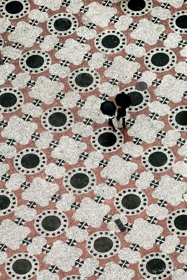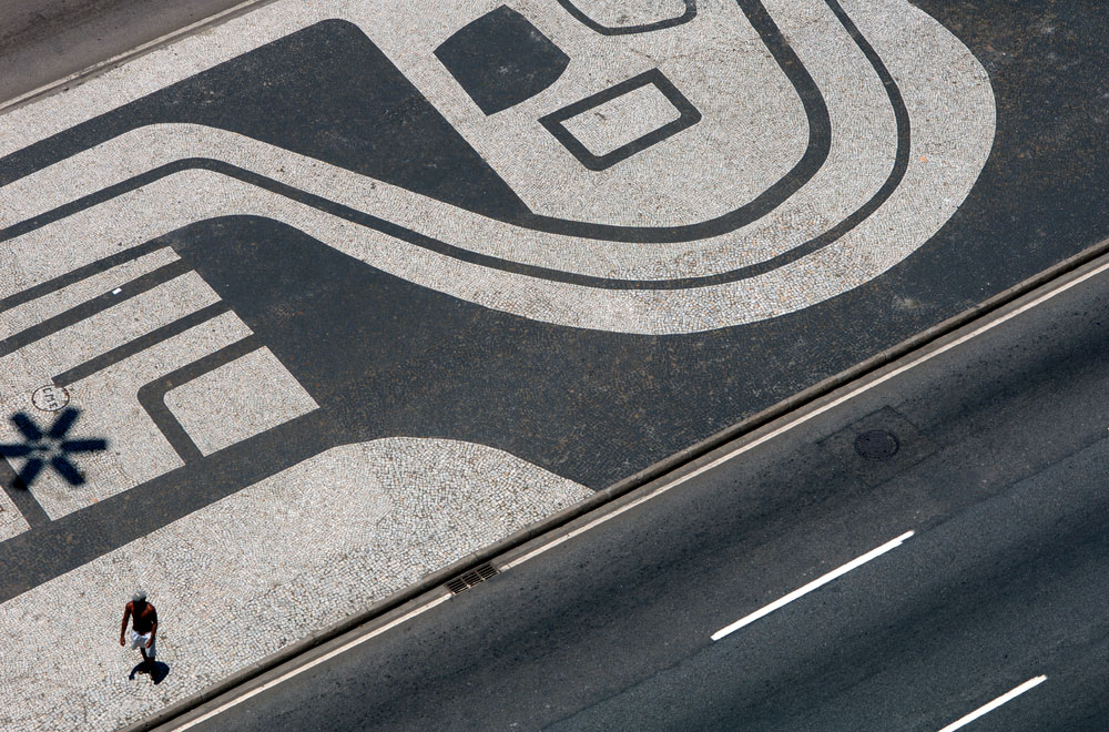 Quem for aos desfiles do Fashion Rio (de 27/5 a 1/6) no Píer Mauá, poderá conferir também a exposição do fotógrafo Bruno Veiga, que apresenta uma seleção de imagens das famosas calçadas cariocas, concebidas pelo genial Burle Marx e executadas em pedra portuguesa. A visão elevada permitiu composições inusitadas, a partir dos próprios desenhos do piso ou acrescidas do elemento humano ou da paisagem urbana. “Pedras Portuguesas” remete ainda ao tema do Fashion Rio, 360º Cidade em Movimento.