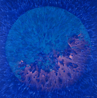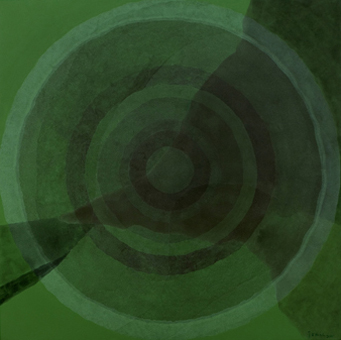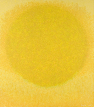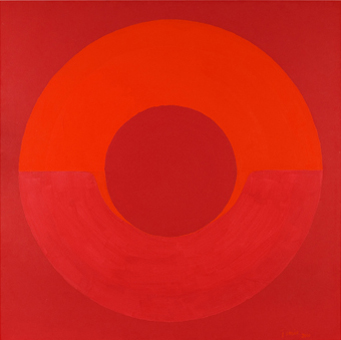 Com dimensões que variam de 1,5 a 2 metros, as novas obras, em acrílico sobre tela, colocam o círculo em evidência em campos monocromáticos.