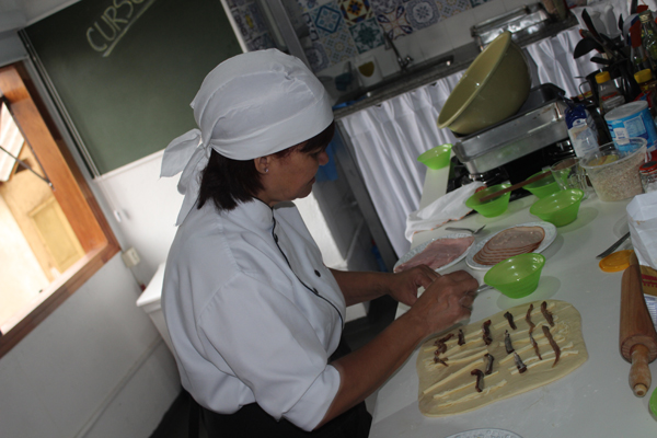 Preparo dos chinequinhos ou caracóis que podem ser doces ou salgados (Foto: Marcos Garcia)