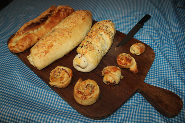 Caracol de calabresa e pão de Atum com queijo (Foto: Marcos Garcia)