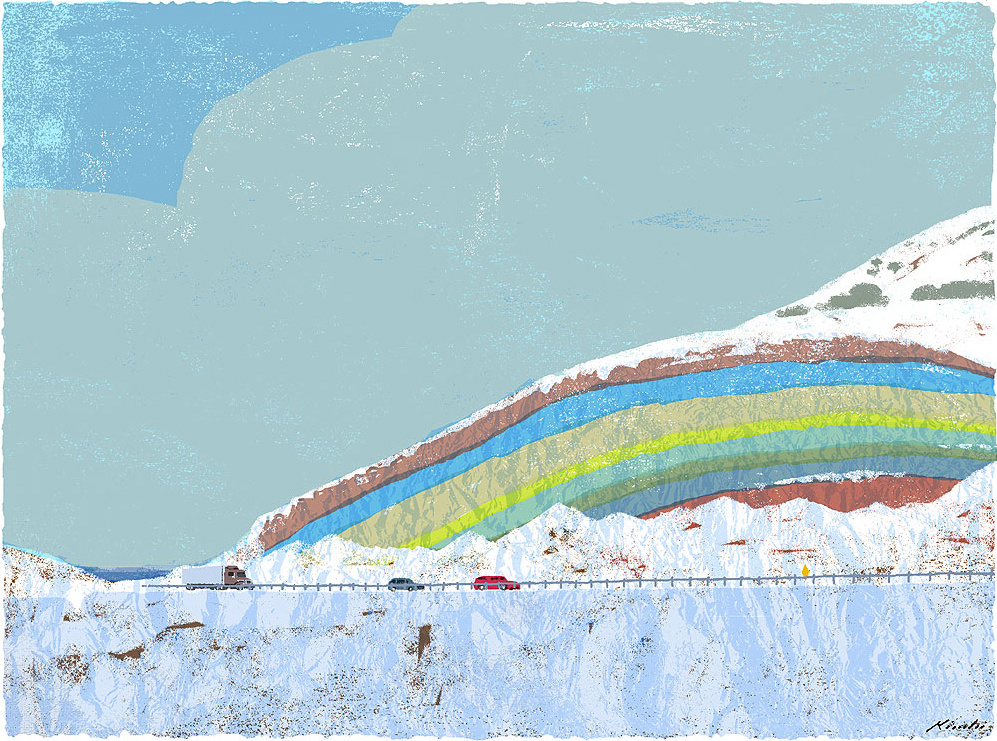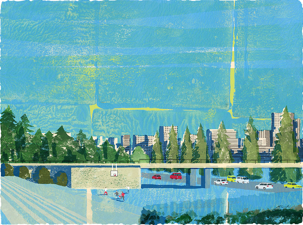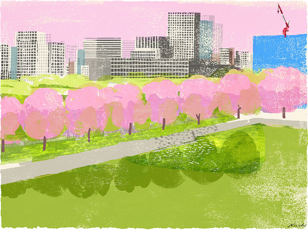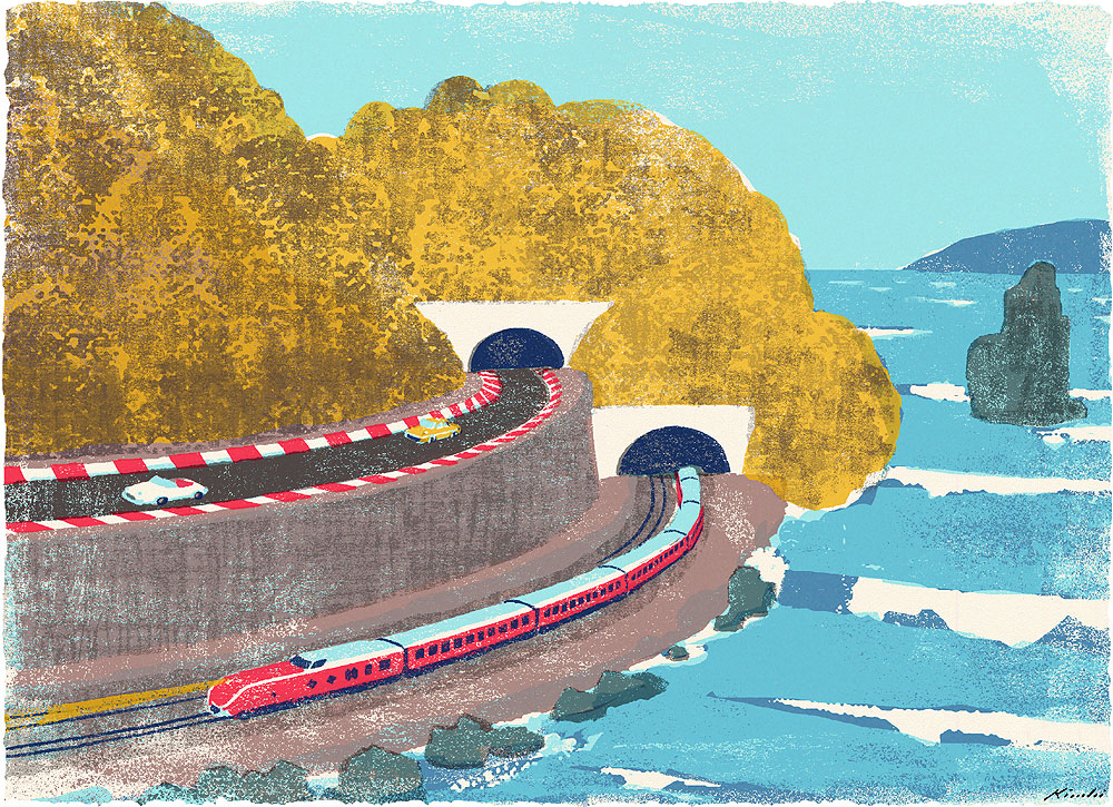 Artista japonês apresenta obras de ilustrações que desenvolveu para uma revista de viagens