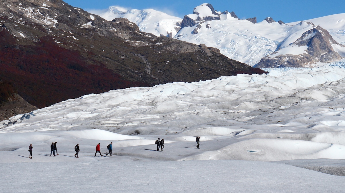 O Perito Moreno, é claro, sozinho vale a viagem, e nós demos a sorte de fazer o Big Ice (trekking guiado sobre o Glaciar) em um dia especial; sem vento, sem nuvens, coisa rara por essas latitudes. Passar um punhado de horas com crampons nos pés sobre um maciço de gelo com mais de 250 quilômetros quadrados, parte da terceira maior massa glaciar do planeta, foi memorável. No caminho, pequenas gretas, afloramentos de água azul turquesa super potável e infinitos seracs.