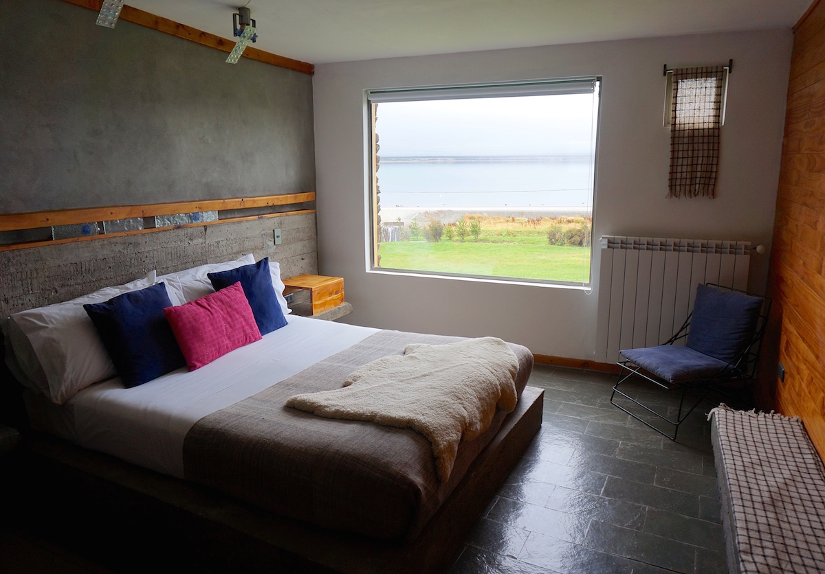 Todos os quartos tem a vista incrível do fiorde Ultima Esperanza e as muitas montanhas ao redor, uma vista e tanto! A via que percorre as margens do fiorde até o centro de Puerto Natales passa em frente ao hotel. A rede de energia poderia não estar lá, mas também, nada demais. São 5 minutos de carro ou uma caminhada de 20 que vale muito a pena para um final de tarde.