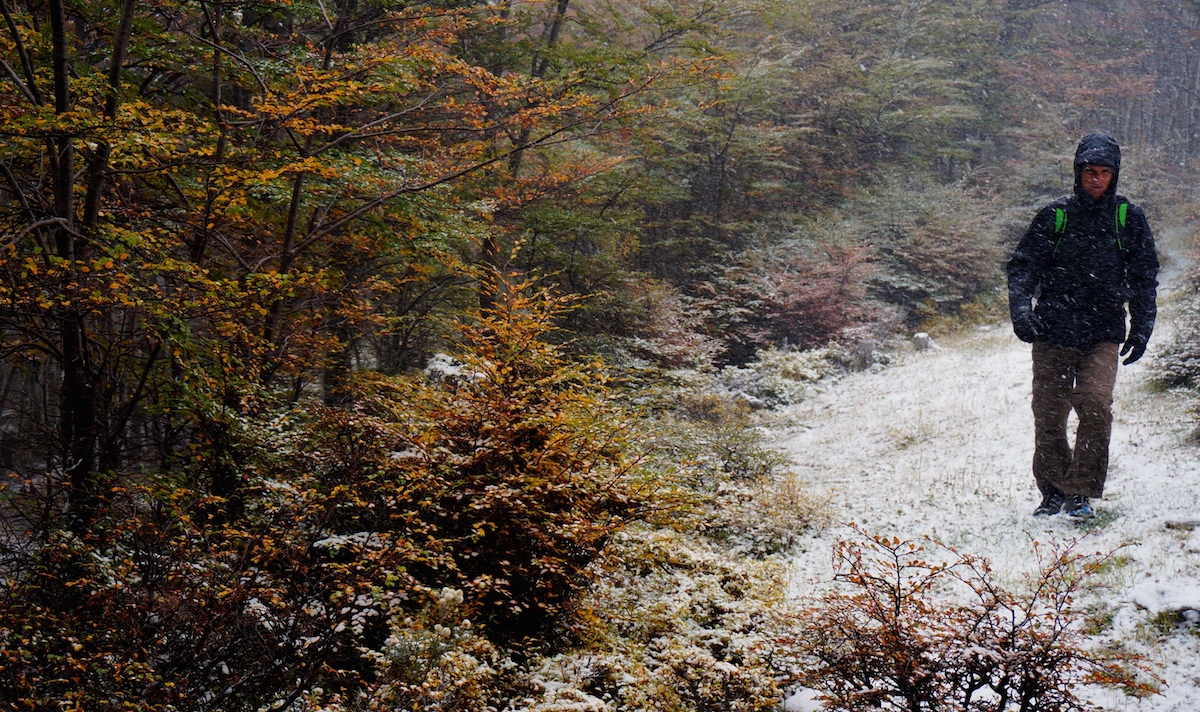 Em uma manhã de clima patagônico não muito amistoso, um taxi nos levou do Altiplanico para o pé do Cerro Dorotea, na parcela 14, a fazenda de onde se parte a trilha de aproximadamente uma hora subindo. Programinha imperdível! A chuva gelada de baixo transformou-se em uma caminhada agradabilíssima dentro de um bosque nevado com as cores lindas do outono.