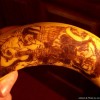 Com certa paciência, Jun vai riscando a banana inteira, caprichando nos detalhes até deixar sua obra do jeito desejado. Aproximadamente 5 minutos depois de riscados, os desenhos começam a aparecer e podem ser vistos perfeitamente de um a dois dias, até que a casca toda da banana começa a oxidar.