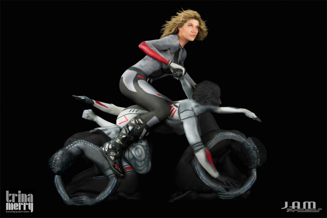 Da mesma forma, Trina trabalha suas “telas humanas” em poses, criando novas oportunidades para a linha e forma. O trabalho é, por vezes realizado ao vivo – como uma instalação -, por exemplo, em museus ou preservado através de fotografias em edições limitadas – fine art prints.