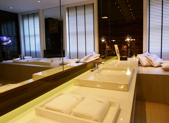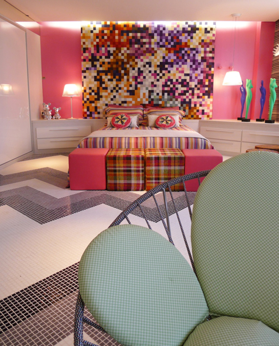 Ok, “tematizar” ambientes é recurso básico para justificar tantos espaços com a mesma função – o quarto do músico, o do ator, o do homem apaixonado… ops! E quando ele não estiver apaixonado, dorme onde? Nem bem aberto, nem bem fechado, o tema levou à solução proposta por Simone Goltcher, mix de Bali com surf, dedicada ao ator Paulo Vilhena, que enfim dá o link, como apaixonado que é pelo esporte.