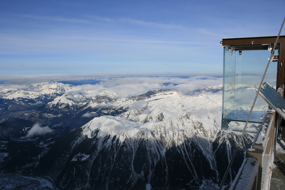 Uma caixa de vidro suspensa a 3mil pés nos alpes franceses