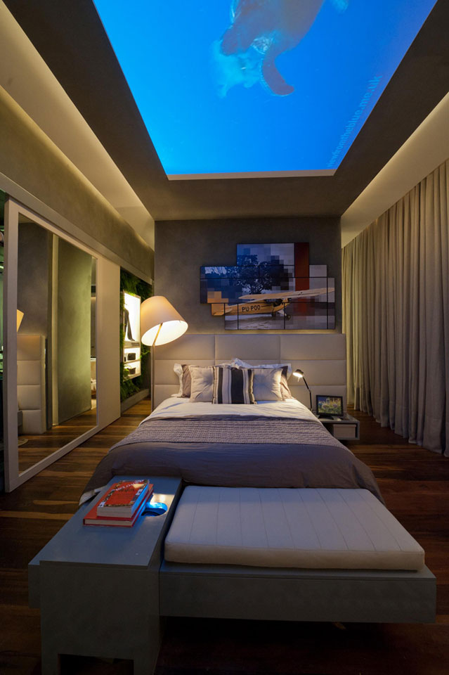 Vocês consideram o resultado plenamente viável ou há elementos conceituais ou apenas demonstrativos de tecnologia e recursos que seria difícil alguém ter e usar no dia-a-dia hoje (por exemplo a tela no teto ou o jardim vertical que fica atrás da porta do armário?).