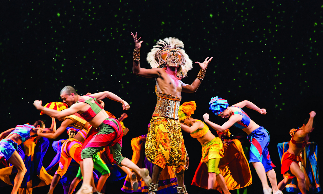 No total, são 53 atores no elenco em cena, incluindo nove sul-africanos. No palco, a visão criativa de Taymor mistura elementos de arte e artesanato africano para retratar personagens antropomórficos. O espetáculo apresenta músicas de Elton John e Tim Rice feitas para o filme “O Rei Leão”, e mais três novas canções de John e Rice; material musical adicional pelo Sul Africano Lebo M, Mancina Mark, Rifkin Jay, Julie Taymor e Hans Zimmer, e músicas do álbum “Rhythm of the Pride Lands“, álbum inspirado pela música original do filme, escrito por Lebo M, Mark Mancina e Hans Zimmer. O som resultante de O REI LEÃO é uma fusão da música popular ocidental e os diferentes sons e ritmos de África, que vão desde a música que rendeu o Oscar “Can You Feel The Love Tonight” até a balada “Shadowland”.