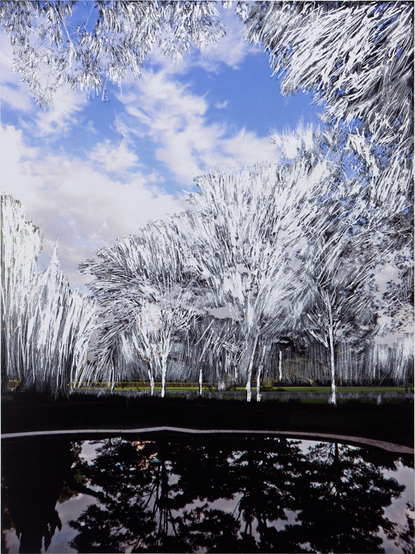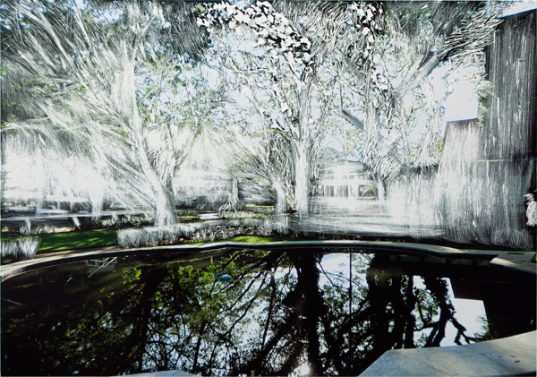 A série apresentada pela artista é um escalavro. Resultado de muita pesquisa. Elementos da gravura tradicional são subvertidos. Rosangela corta, faz a impressão e inversão da imagem, sendo que a ordem das operações é outra. Nesta série a maioria das paisagens aparecem invertidas. O resultado é que ali a inversão da imagem que na gravura tradicional ocorre na impressão, aqui aparece no reflexo. A imagem refletida é permitida ao expectador, enquanto é vetada a visão original: Esta, já não está.