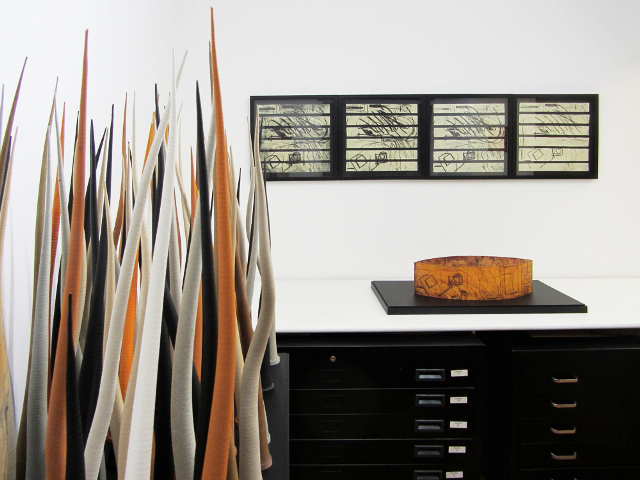 Gravuras tendo como suporte películas fotográficas de poliéster, Livro Aberto foi concebido a partir de longas tiras de papel, que ao serem trabalhadas chegam à formas escultóricas e à gravuras tri-dimensionais. Criando uma poética própria, a tira, a curva, o redondo, o mole e a espiral se repetem em diferentes situações e dimensões. Sua imagem, o antigo, o início, a pré imagem, as garatujas e o sânscrito. A cor, a da terra, ora seca ora úmida, ora com o ocre quase amarelo do dia ora com o escuro quase negro da noite.