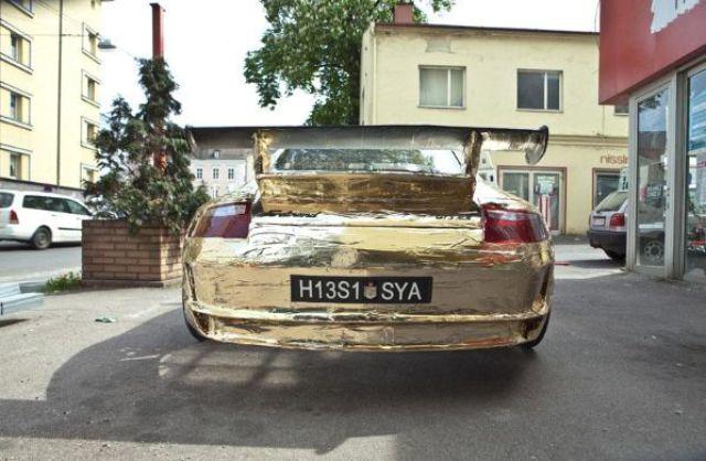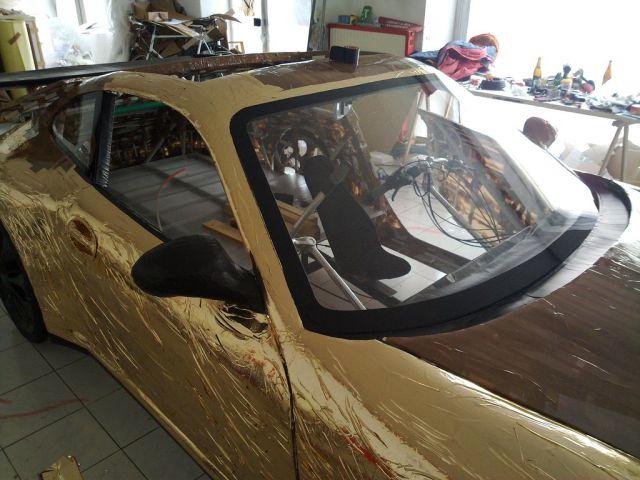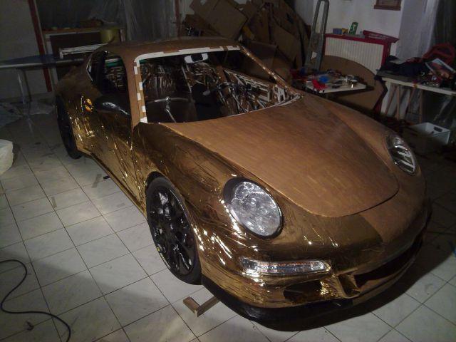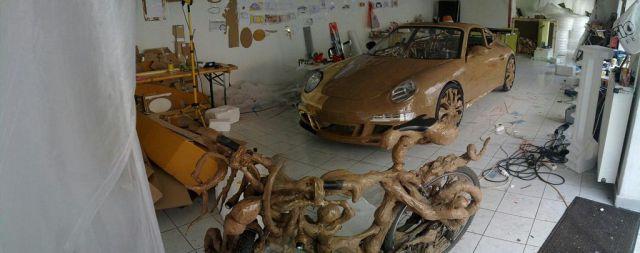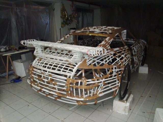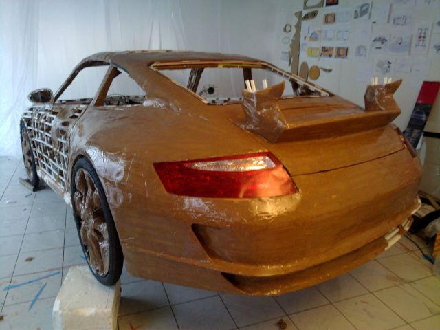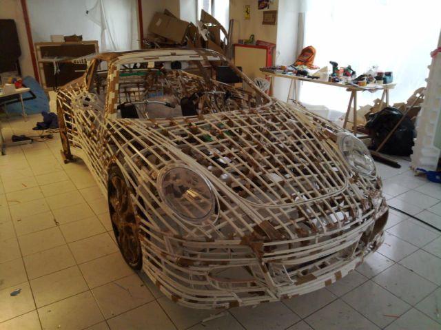 Ser dono de um modelo da Porsche é o sonho de consumo para muitas pessoas, mas ter um de verdade é para poucos. Assim, o artista plástico austríaco Hannes Langeder resolveu criar o seu próprio Porshe, utilizando dezenas de tubos de plástico, rolos de fita adesiva, borracha e papel-alumínio.