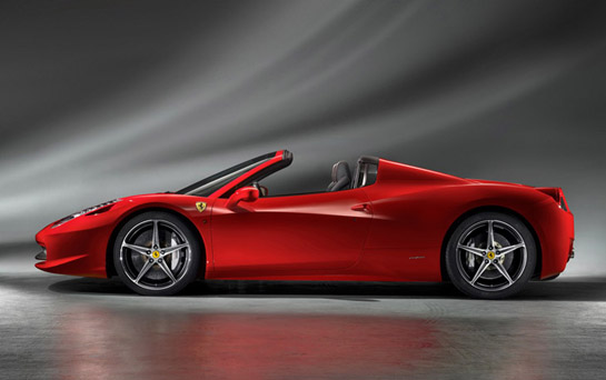 A Ferrari revela as primeiras imagens oficiais da Ferrari 458 Spider, uma versão conversível da 458 Italia, que será uma das principais atrações do Salão de Frankfurt, realizado de 13 a 25 de setembro. O modelo possui motor central e traz como principal destaque a capota rígida retrátil feita em alumínio.