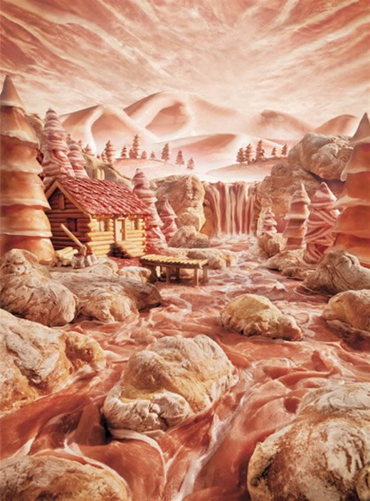 Com inspiração das paisagens de “O Mágico de Oz” e “A Fantástica Fábrica de Chocolates”, Carl Warner desenvolve incríveis fotografias feitas de comida real que ele batizou de “foodscapes”.