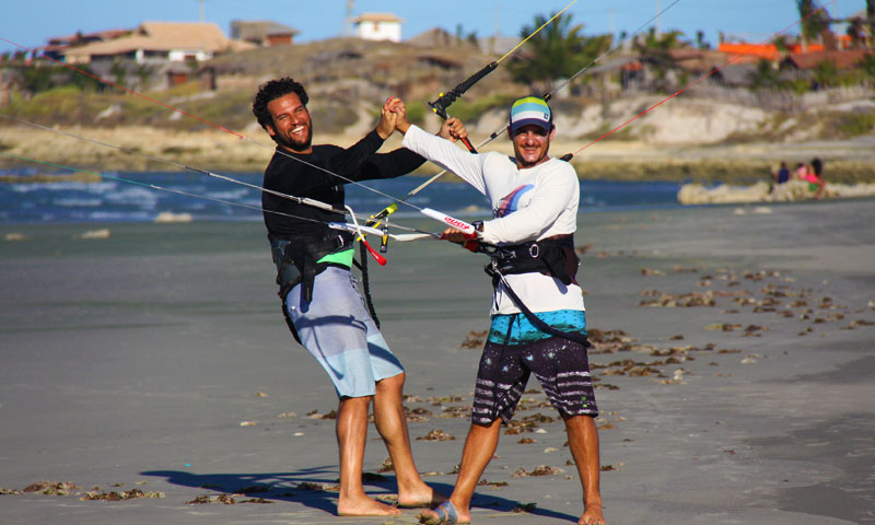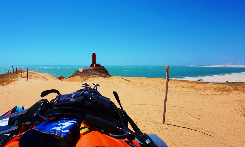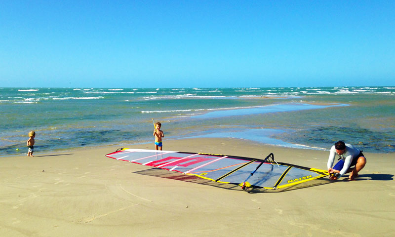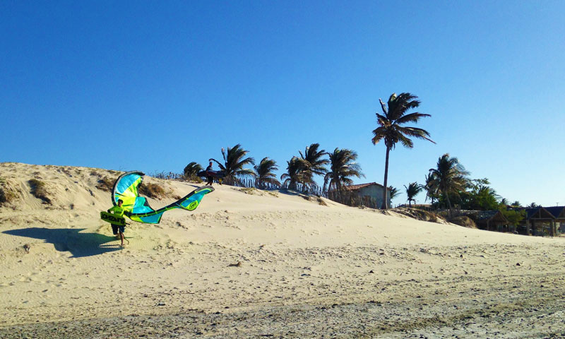 Fortim, a pouco menos de 2 horas de Fortaleza, só não foi uma inteira surpresa porque já há uns dois anos vínhamos ouvindo repetidos elogios dos amigos que por lá passavam. Ainda assim superou as expectativas! Entre duas barras de rio, o Jaguaribe a leste e o Piranji a oeste, e o ventilador dos Alísios ligado 24 horas, o lugar é o playground perfeito para o esporte.