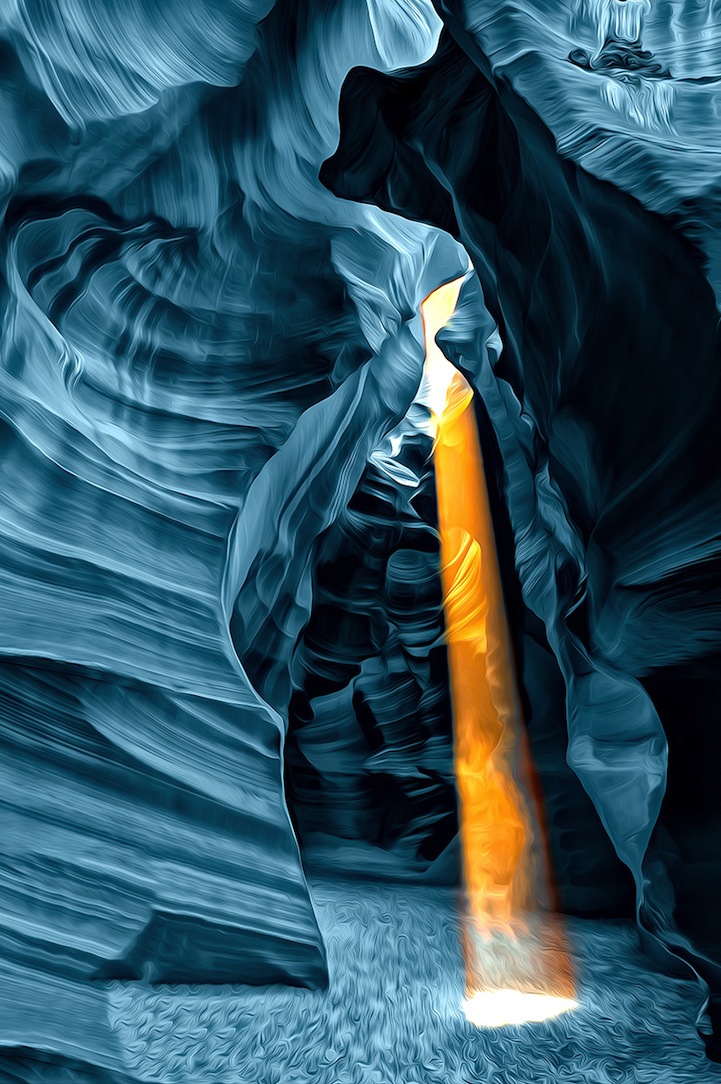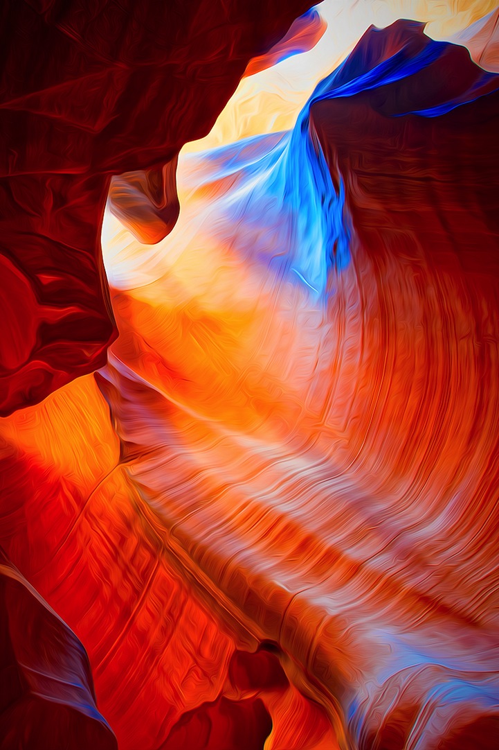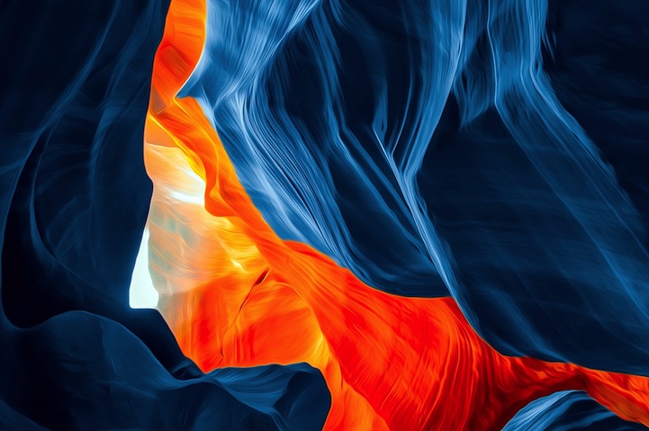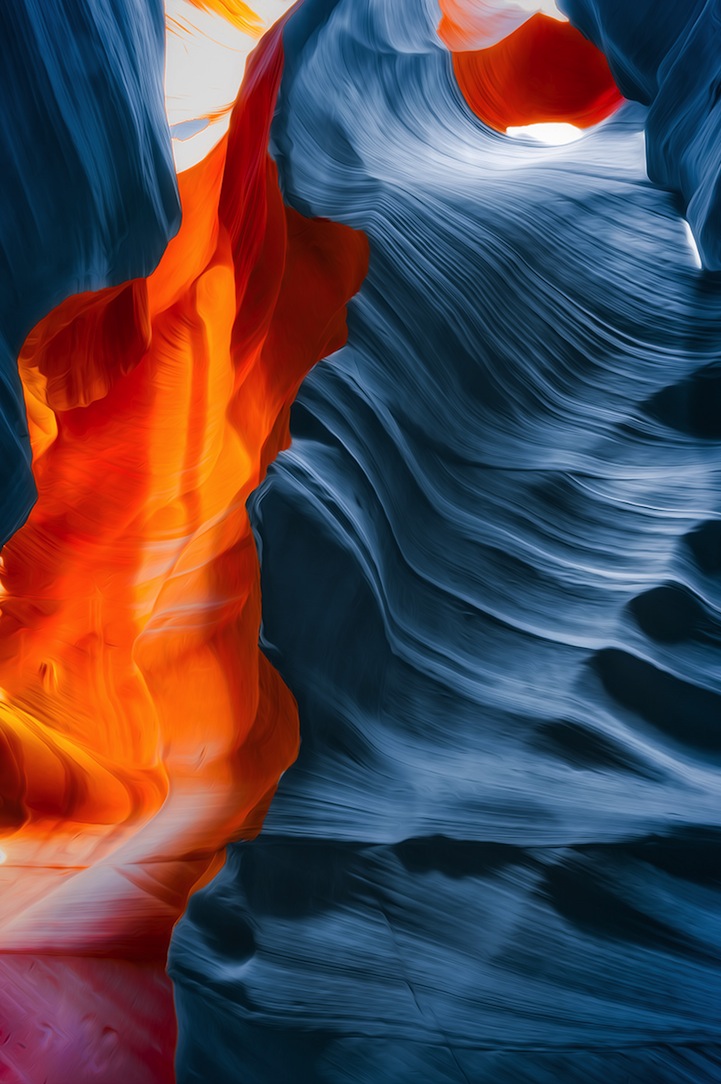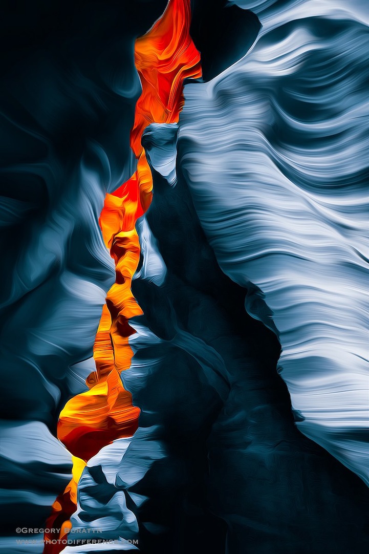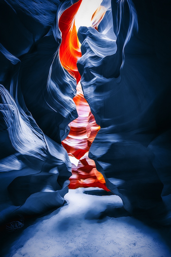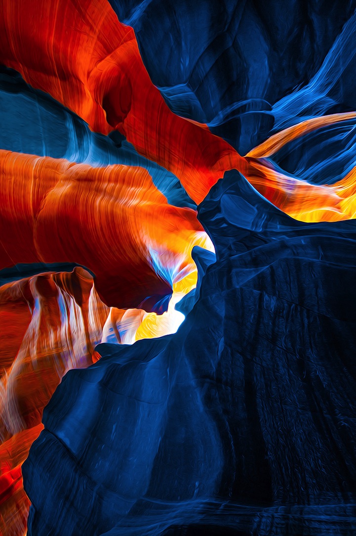 Originalmente, os cânions tem uma coloração amarronzada e alguns formatos circulares que criam perspectiva de profundidade. O ângulo das fotos ajudam a criar essa atmosfera psicodélica, o que é intensificado com a manipulação de cores que ele realiza, criando um ambiente que fica visualmente espetacular.