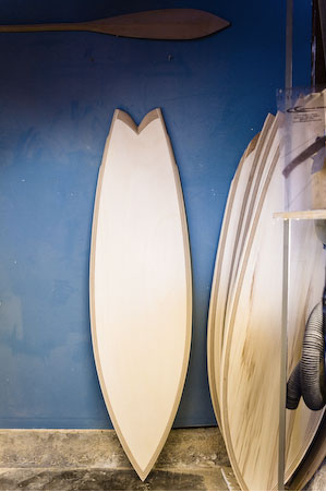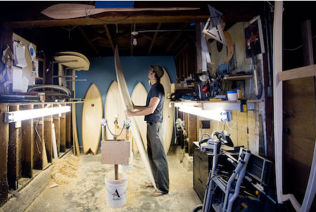 Criada para testes, a última prancha de madeira do shaper, mesclada com espuma, custou US$ 795, um preço considerável acessível para os surfistas.