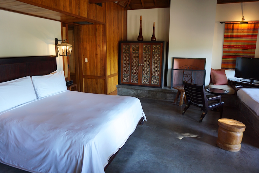 Hyatt Carmelo oferece 44 quartos, entre Bangalôs e Suítes, todos com vista para o bosque, piscina, vinhedos e alguns conseguem enxergar o rio ao fundo. O bangalô que ficamos tinha 90m2, cama king size, closet, hidromassagem, ducha com jardim externo, varanda com espreguiçadeira e sofá cama. Ótimo para acomodar nossa família (2 adultos e 2 crianças pequenas). O ponto alto do quarto é sem sombra de dúvida o banheiro. As suítes são um pouco maiores (120m2) e ideais para famílias ou grupo de amigos.