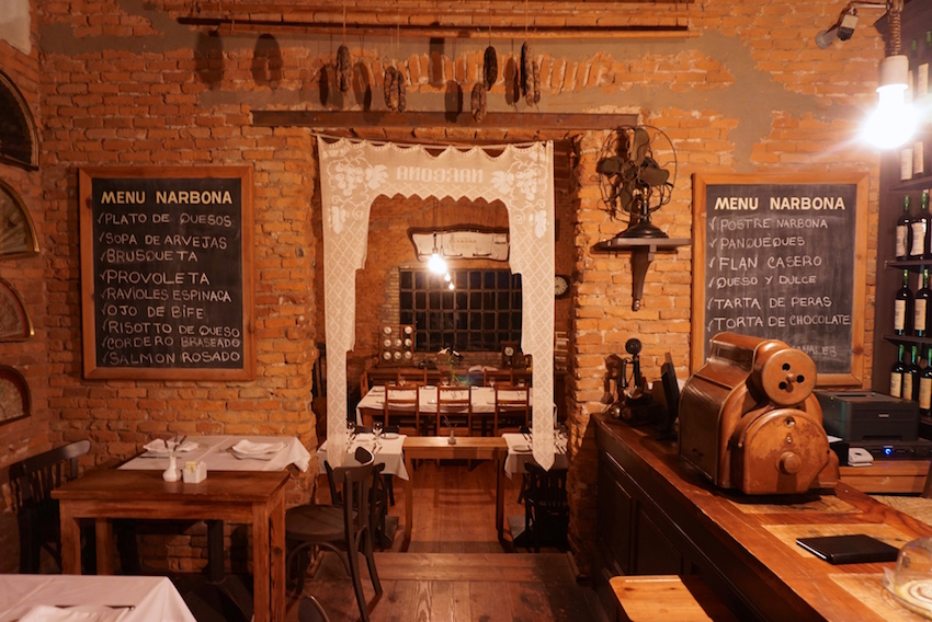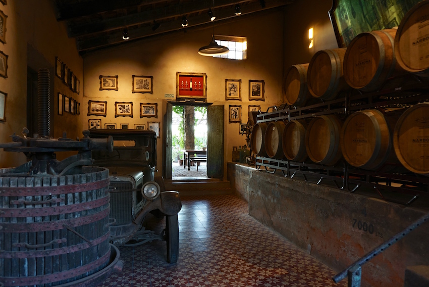 Chegamos no finzinho da tarde. Meio aéreos, um pouco atrasados. Logo que descemos do carro um enólogo e sua aluna nos receberam e pediram para que os seguíssemos. Passamos por um caminho cheio de artigos interessantes, um monte de antiguidades bem cuidadas e um charme particular. Entramos no prédio, descemos uns dois lances de escada e chegamos à um salão no subsolo. Distraído com as fotografias, demorei um pouco para me dar conta do silêncio do ambiente. Estávamos em uma das adegas da vinícola Narbona para uma degustação de vinhos e queijos da casa. Olhei para a Vivi, já sentadinha à mesa junto com os outros visitantes ouvindo as explicações do jovem conhecedor de vinhos. Olhei para os meninos: baterias com 80% de carga, cenário novo, módulo curiosidade ligado. Pensei que meu programinha apetitoso iria micar… mas nada como um desenhinho estratégico de vez em quando. Parceiríssimos!