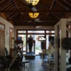 A área do Hyatt é imensa, quase toda ela um bosque de pinus e eucaliptos, recortado por ruas de terra impecáveis. A área edificada do hotel marca presença quando se chega à entrada. A porta enorme e pesada da recepção é uma obra de arte entalhada a mão na Indonésia, estilo que aliás empresta ao Hyatt uma atmosfera curiosa de elementos asiáticos em meio às parreiras entre as quais percorrem os caminhos do hotel.