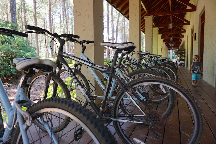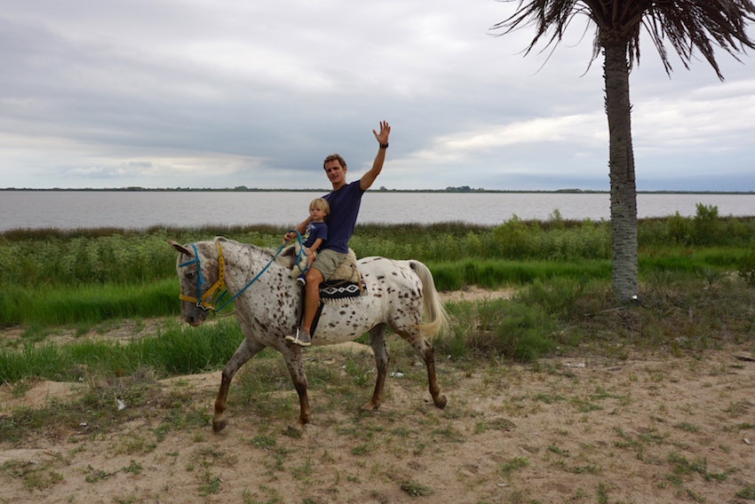 Na primeira parte de nossa viagem pelo Uruguai rodamos bastante de bike, pedalamos praticamente todo o caminho de Chuy a Punta del Leste. Sempre que havia oportunidade para pedalarmos todos juntos, não desperdissávamos. O Cauê pedalando a sua magrelinha aro 14″ e o Theo na cadeirinha da bike da Vivi feliz da vida é para nós um momento impagável! No segundo dia em que estávamos por lá fomos convidados pela Mariana, a super atenciosa representante do Hyatt, para irmos de bike almoçar em Puerto Camacho. É uma boa pedida. O hotel tem várias bicicletas a disposição dos hóspedes.