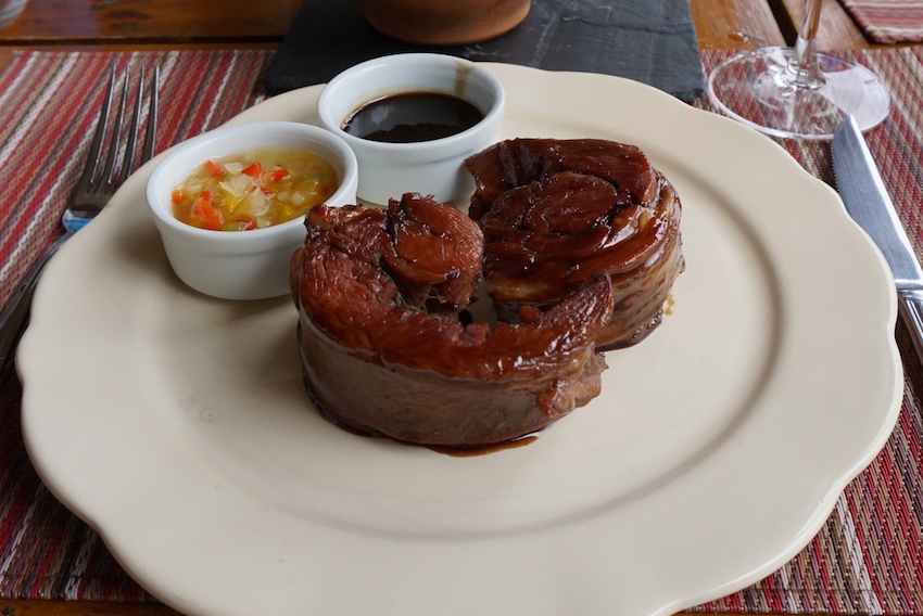 São duas opções, o Restaurante Pura, onde é servido o café da manhã, almoço e jantar. Também o Rio Bar, ao lado da piscina, que serve frutos do mar e oferece petiscos, sanduíches e saladas, você pode optar pelo salão ou ficar na própria piscina. Além destes restaurantes que ficam dentro do hotel existe a opção de fazer a sua refeição no restaurante Basta Pedro em Puerto Camacho ou no Narbona Wine Lodge que é membro do Relais & Chateau. Nós testamos todos, jantamos no Narbona e Rio Bar, almoçamos no Basta Pedro e Pura. O que nós mais gostamos?! Difícil escolher, mas nosso jantar no restaurante Rio Bar ao ar livre, sob lua cheia, luz de vela e muito frutos do mar é um desses que guardaremos com carinho em nossa memória.