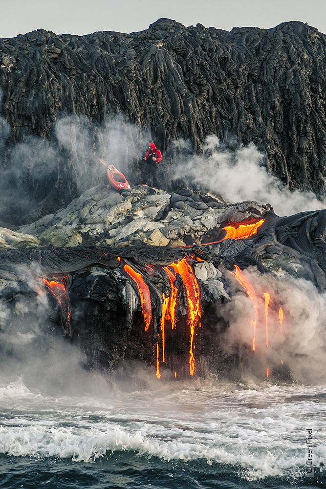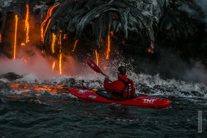 O fotógrafo brasileiro Alexandre Socci é conhecido por um trabalho que envolve aventura e risco. Ao lado do experiente caiaquista Pedro Oliva e de outros membros da sua equipe, Ben Stookesberry e Chris Korbulic, ele decidiu enfrentar as águas turbulentas ao redor de Kilauea, um vulcão ativo no sudeste da ilha de Mauna Loa, no centro-sul do Havaí. O diferente (e o perigo) está no fato do vulcão soltar pequenas “doses” de lava e criar um ambiente inóspito e impropício para a aventura – e era isso que eles precisavam para se motivar e realizar o desafio.