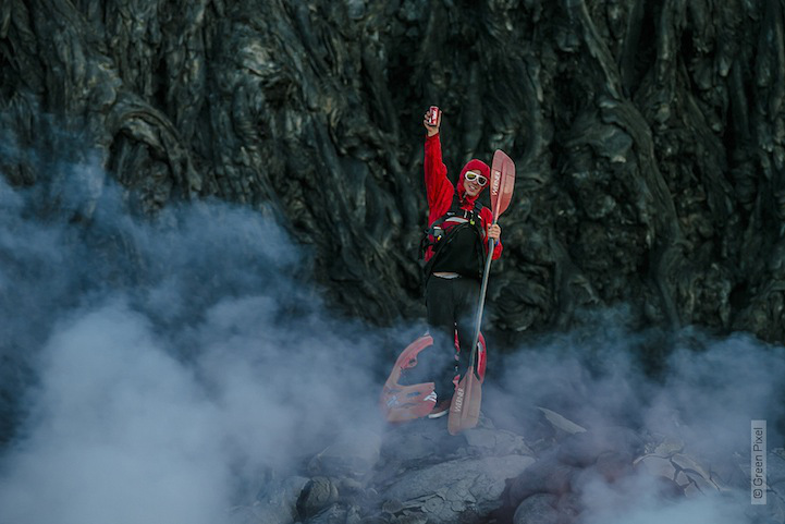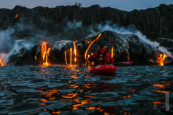 As incríveis imagens mostram o perigo e a maravilha diante das lavas que flutuam e contornam os caiaques