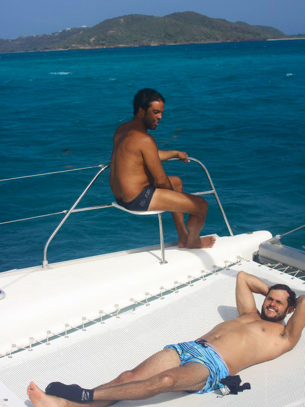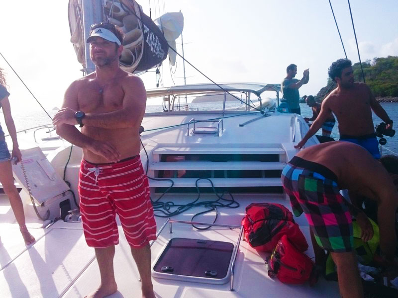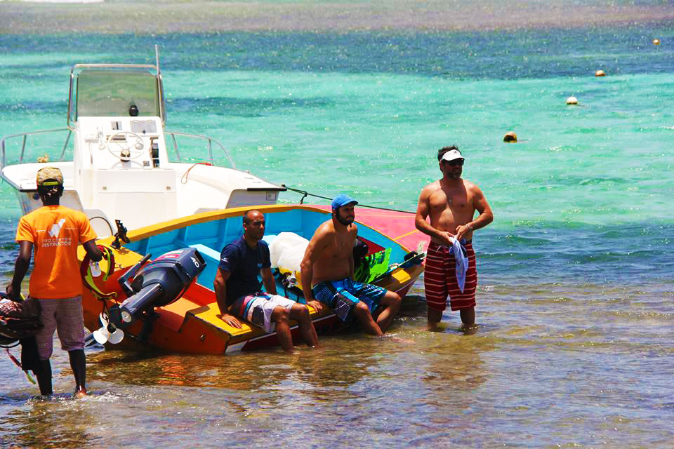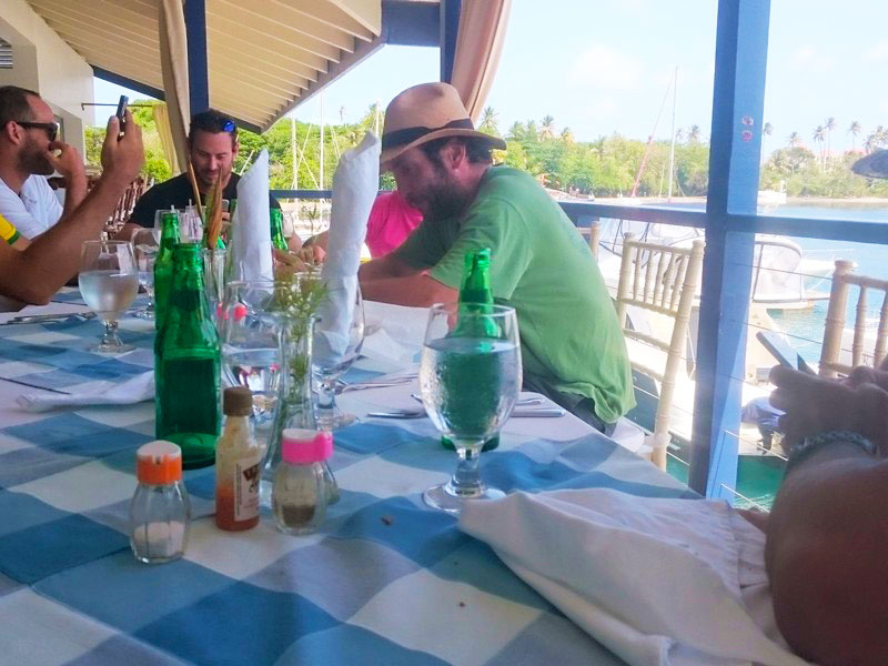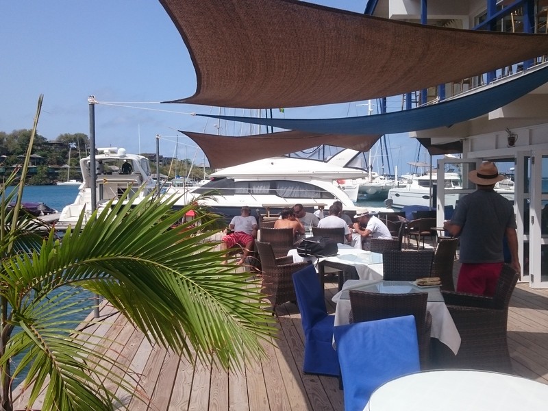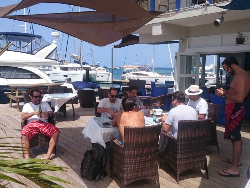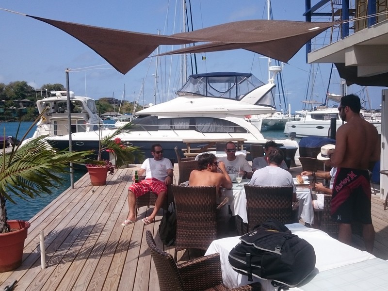 Pontualmente ao meio dia, nosso capitão :: Richard Scott do Caribbean Kite Cruise :: nos encontrou no restaurante do Hotel e Marina Blue Lagoon para enfim iniciarmos nossa expedição à procura dos melhores picos para o Kitesurf caribenho.