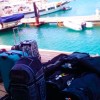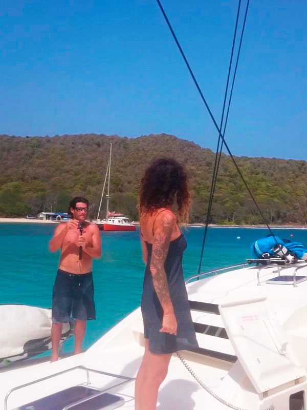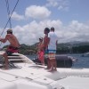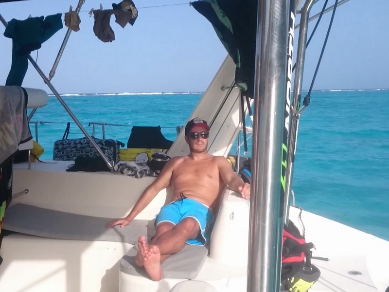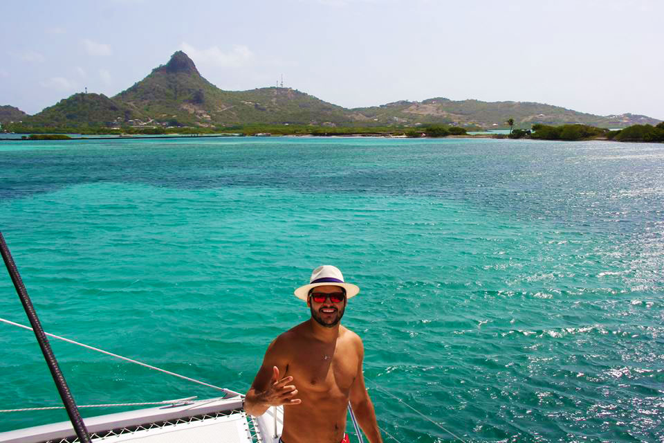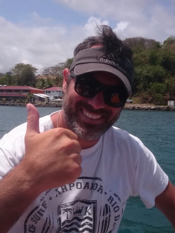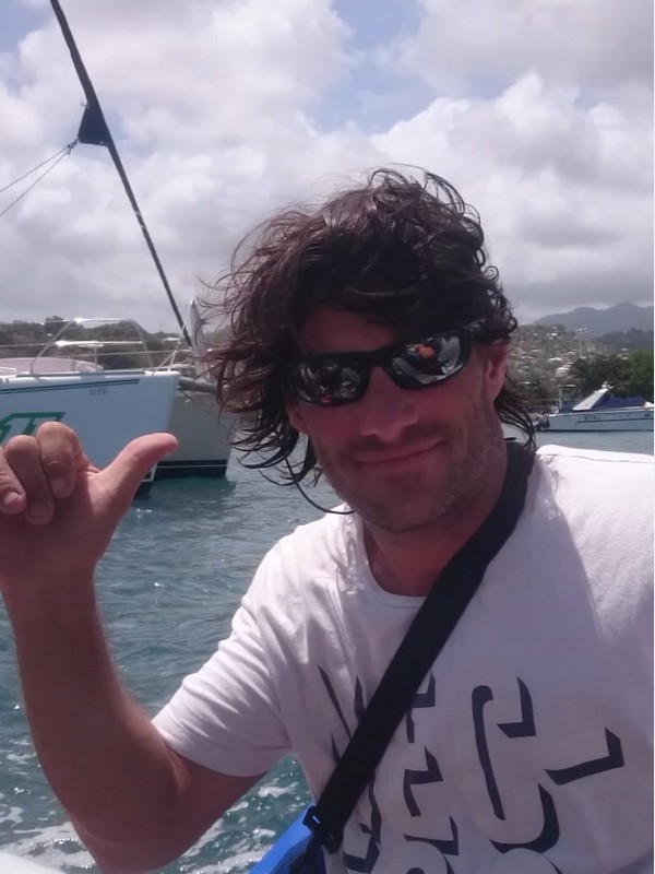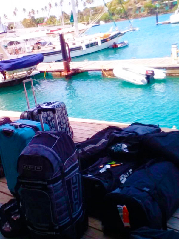 Pontualmente ao meio dia, nosso capitão :: Richard Scott do Caribbean Kite Cruise :: nos encontrou no restaurante do Hotel e Marina Blue Lagoon para enfim iniciarmos nossa expedição à procura dos melhores picos para o Kitesurf caribenho.