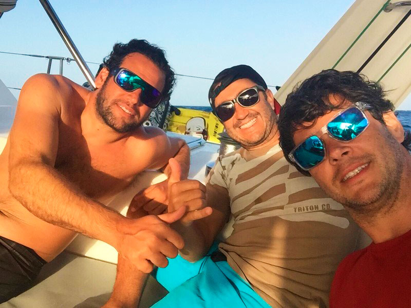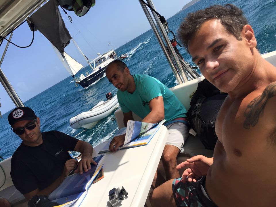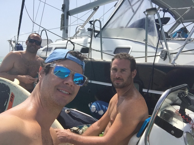 Como tivemos muitos adeptos e a lotação máxima do catamarã KiteSurfari é para 8 velejadores, Richard pediu para seu amigo Roberto nos auxiliar na viagem dividindo a turma em 2 barcos (tudo combinado previamente, claro).