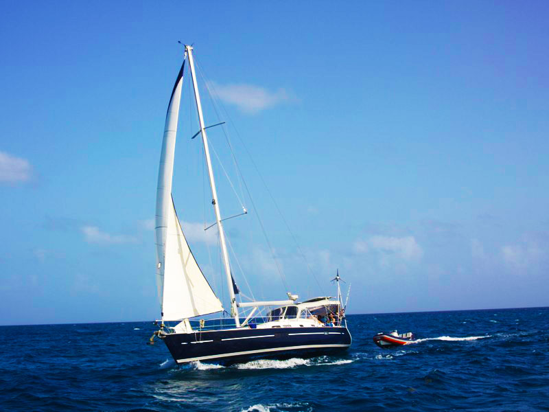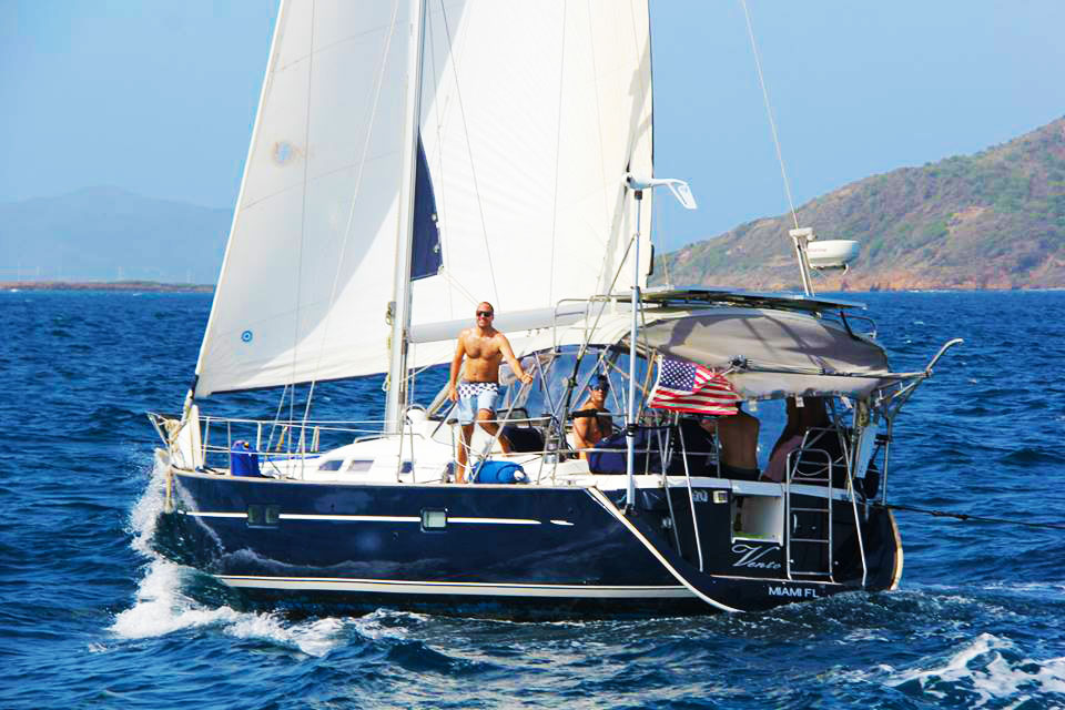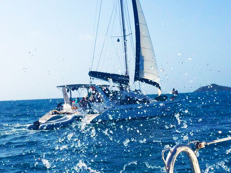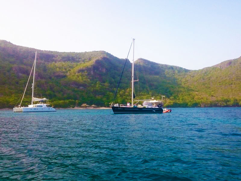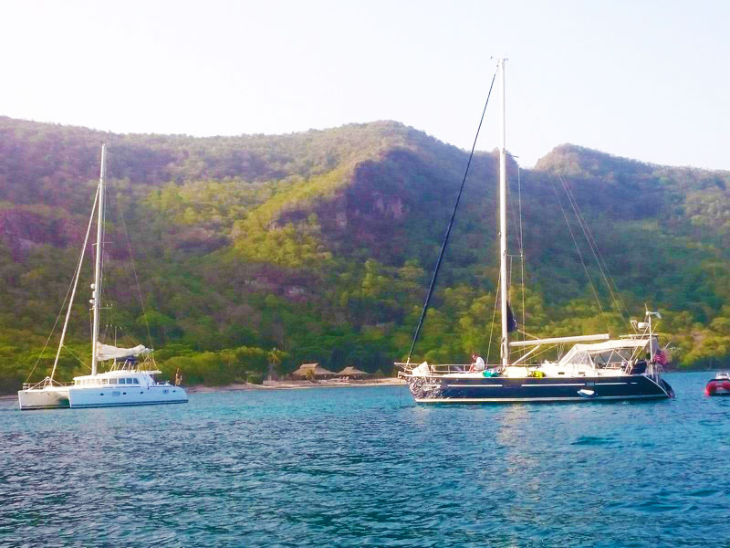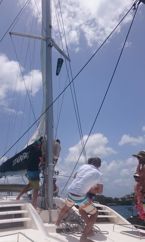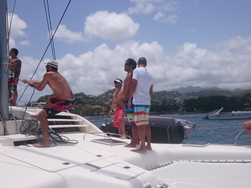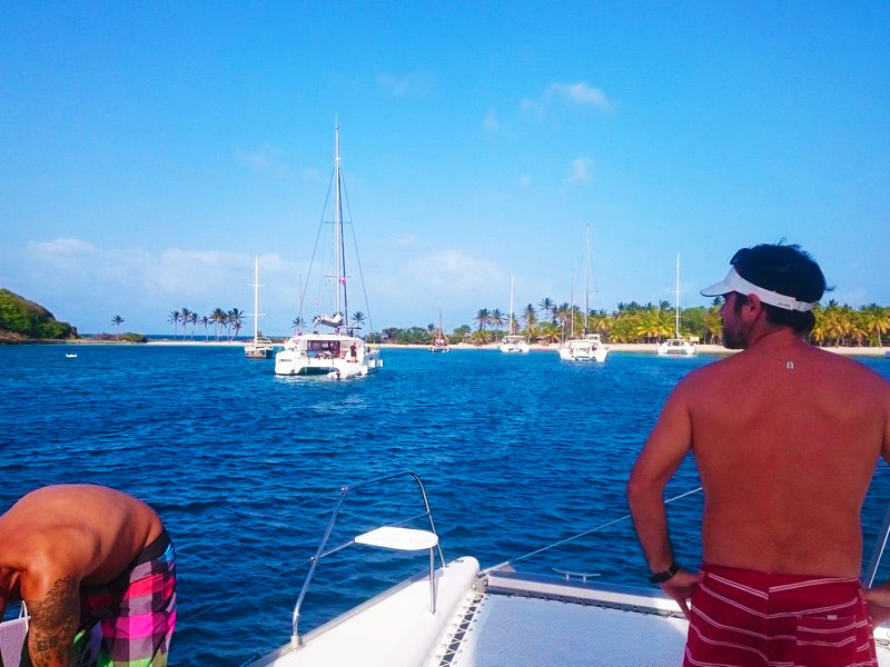 Assim que todos estavam acomodados, partimos para o velejo (um catamarã e um veleiro monocasco) com destino à Mayreau.