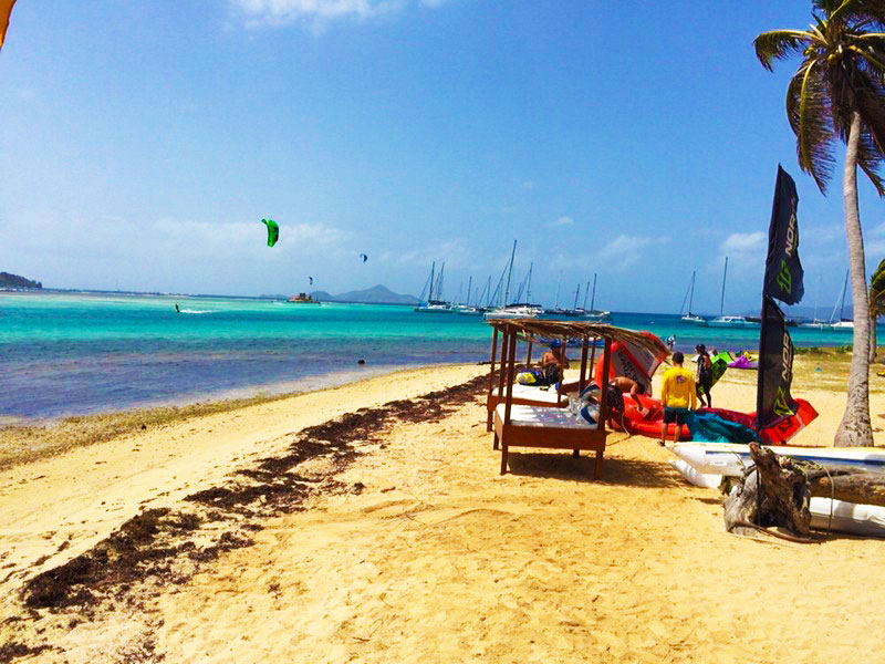 Após aproximadamente 5 horas rasgando o mar caribenho (em través) chegamos nessa pequena ilha paradisíaca perfeita pro Kitesurf. Todos ficaram maravilhados pela beleza de Mayreau e logo armaram os equipamentos para a primeira sessão de Kite da viagem!