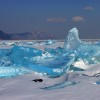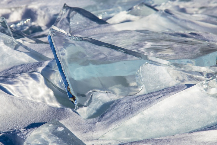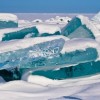 Durante os meses de inverno, que dura de Janeiro a Maio, o lago congela e forma fantásticas formas de gelo que mesclam o branco pálido da neve com um azul intenso que vem da água. Vários fotógrafos que exploraram a área em Março conseguiram captar esses momentos, que parecem cristais que brotam das águas congeladas.