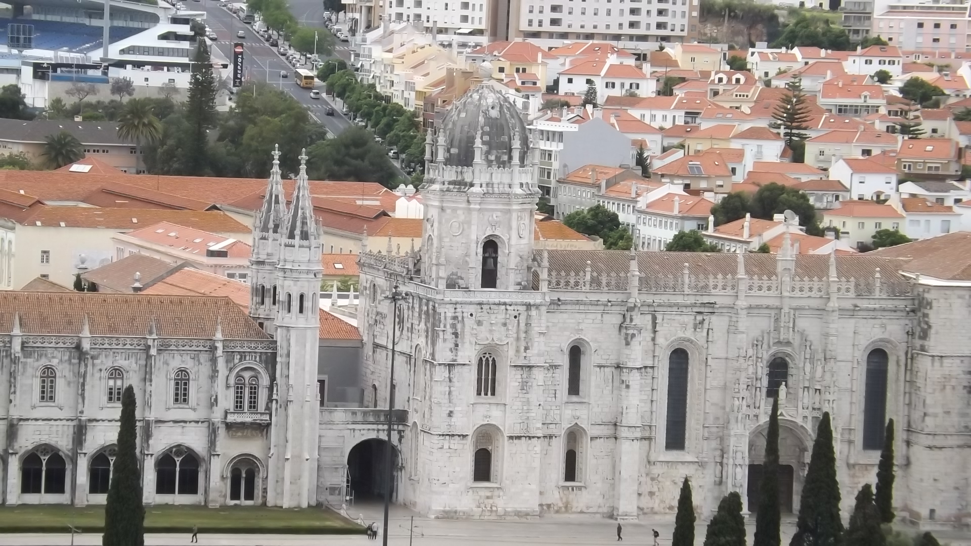 Saindo um pouco da região central de Lisboa, chegamos a Belém. Às margens do rio Tejo já conseguimos ver a deslumbrante construção que é a Torre de Belém, mas a visita começa em outro lugar, no Mosteiro dos Jerónimos.