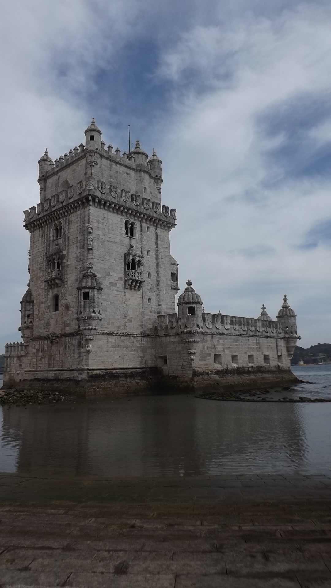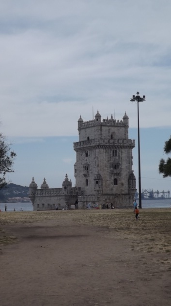 Logo depois, a gente segue para a Torre de Belém, um dos monumentos mais expressivos e conhecidos de Lisboa. Ela localiza-se na margem direita do Tejo, onde havia a praia de Belém. Inicialmente cercada pelas águas em todo o seu perímetro, a construção foi progressivamente envolvida pela praia, até se incorporar à terra firme.
