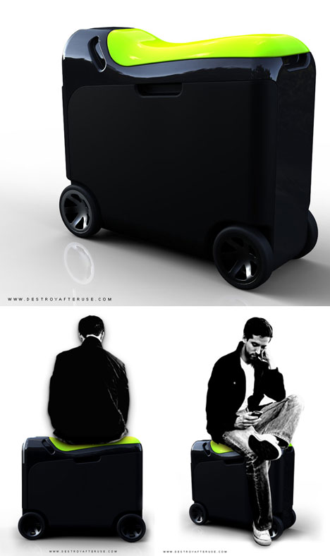 O RIDN é uma mala desenvolvida para não deixar seus donos com problemas para arrumar um lugar para sentar, pois apresenta um assento almofadado.