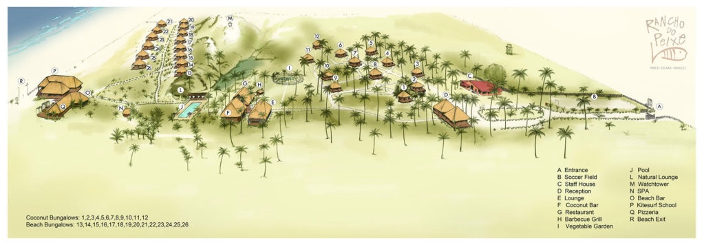 A hospedagem na pousada Rancho do Peixe não poderia ser melhor! Os bangalôs são extremamente simples, mas de um bom gosto impar. Super bem equipados, inclusive até com máquina de nespresso para o nosso deleite pós velejo. Os quartos com vista para o mar são os mais procurados, mas para quem gosta de tranquilidade, a opção dos bangalôs do coqueiral é perfeita.