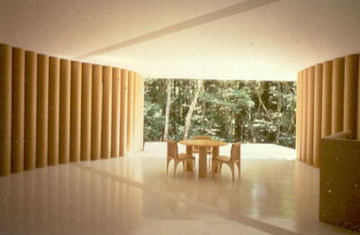 O interessante é que Ban descobriu a eficiência do seu trabalho meio por acaso. Em 1989 colocou em prática o seu primeiro projeto, o Paper Arbour (bosque de papel), composto por 48 tubos de papelão. Os tubos foram tratados com parafina para evitar umidade, presos a uma base de concreto e por um anel de madeira na parte de cima e firmados nas laterais por uma liga de cola. Entre os tubos foram esticados fios para uma lona ser colocada como teto. O obra ficou 6 meses exposta a chuva e sol, mas  quando foi desmontada se percebeu que o material estava em ótimas condições, até mesmo com a resistência aumentada pela ação dos raios do sol.
