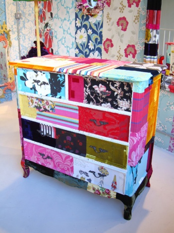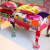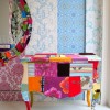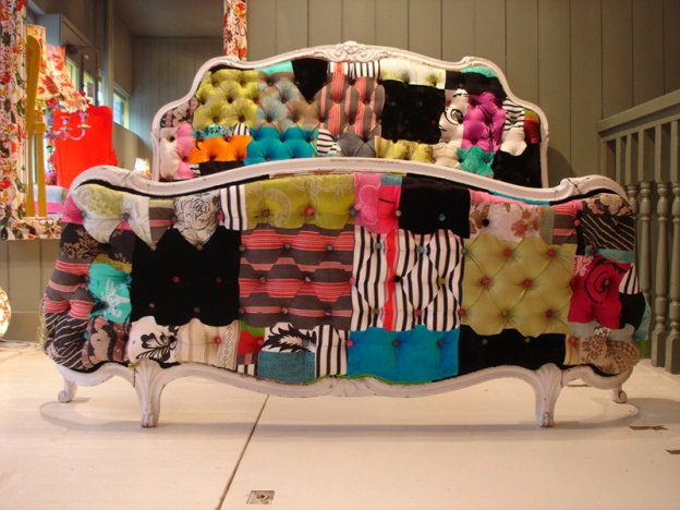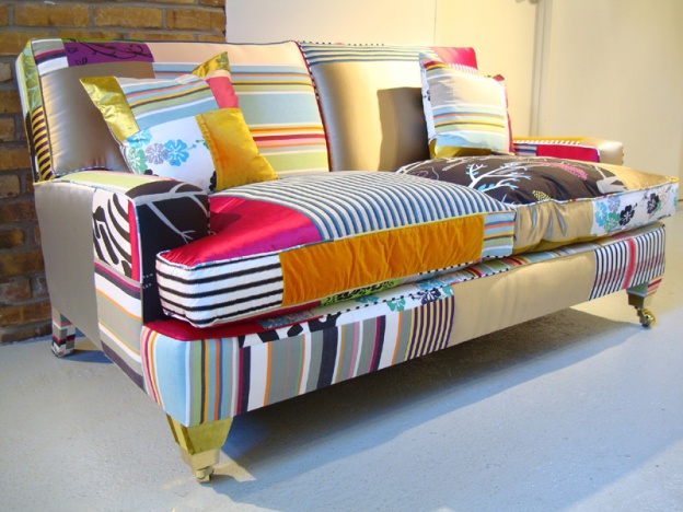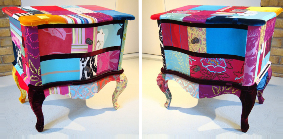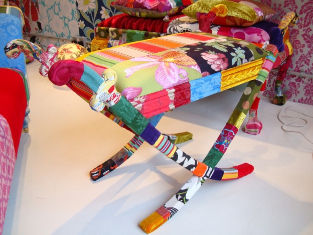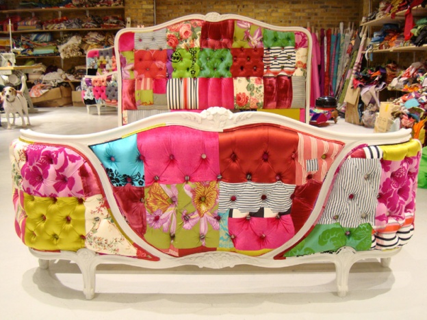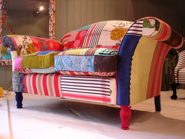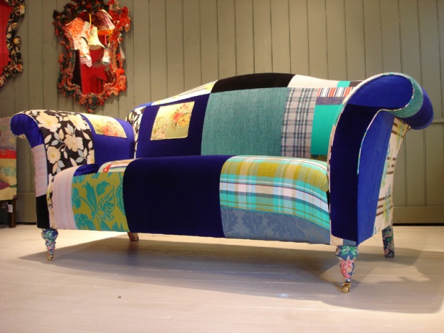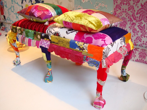Não satisfeita em usar a técnica como estofamento de sofás e poltronas, a marca londrina Squint propõe foco total no patchwork, o que significa cobrir um móvel inteiramente, da “cabeça aos pés”, com revestimento de retalhos – tenha ele partes estofadas ou não, seja de estilo, detalhadamente adornado ou de linhas retas.