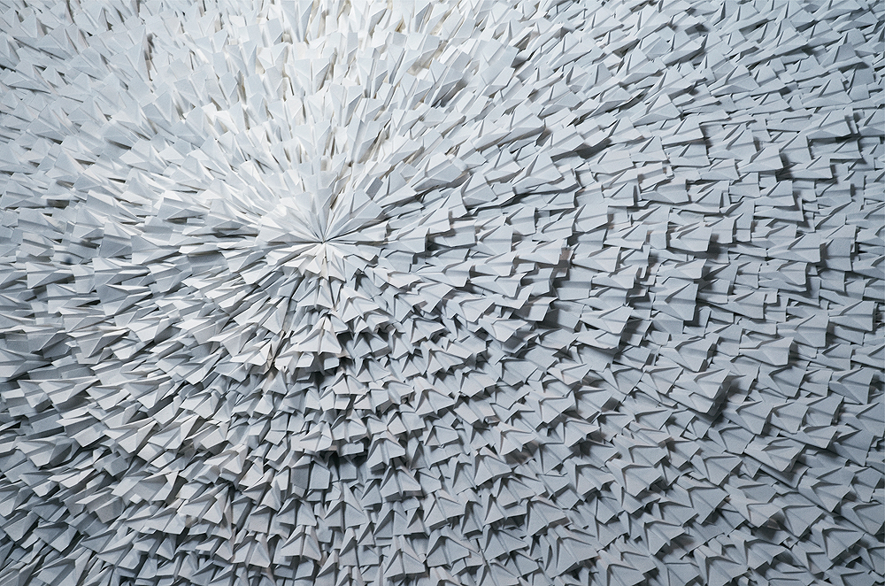 A paleta de cores é econômica e fria, com predominância de azul, branco e cinza. Em Planos Aéreos, esse atributo é um caminho para fuga e requalificação semântica de símbolos de leveza e desprendimento. A recombinação deles confere gravidade e outros fragmentos de sentido – e sentimento – na fruição do observador. Segundo Matos, um dos destaques é a obra Máquina de voar (76 cm x 100 cm), uma colagem com mais de 2.500 aviões de papel (dobraduras).