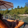 No hotel, a pequena e charmosa praia particular, faz a alegria e garante o relax dos hóspedes.