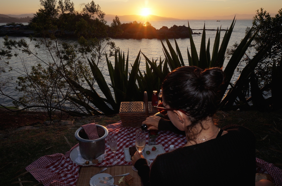 Em um primeiro instante, confesso que não havia percebido o potencial do mimo. Mas isso foi só até chegar ao cantinho e encontrar uma toalha posta sobre o gramado, cheia de delícias, e aquele solzão magnífico a caminho do horizonte para mergulhar no mar. Fim de tarde memorável! E a capivara lá para nos fazer compania…