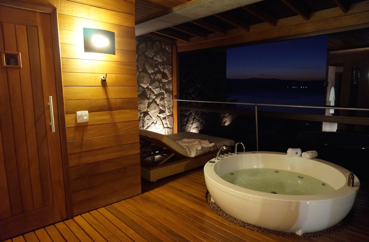 As tendas ficam localizadas no extremo da península privilegiando a privacidade a beira mar, o Spa oferece tratamentos relaxantes e terapêuticos. Nós tivemos a oportunidade de experimentar uma massagem relaxante. Fomos recebidos com escalda pés, chá e uma 1 hora de uma massagem deliciosa.