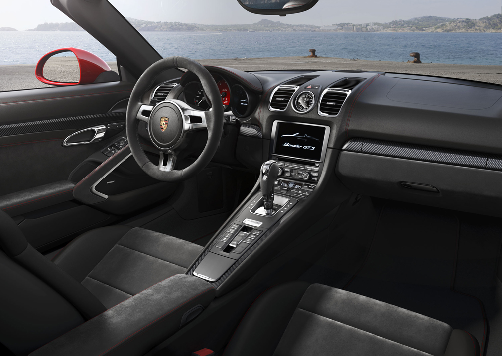 O Boxster GTS e o Cayman GTS combinam dinâmica de direção de primeira categoria com o conjunto de características tradicionais da Porsche, sem diminuir o conforto durante a viagem e contando com aspectos exclusivos. Por exemplo, a combinação do PASM com o pacote Sport Chrono que vêm de fábrica permite ao condutor que mude de esportividade progressiva para conforto durante longas distâncias, apenas pressionando um botão. Os pneus medindo 235/35 na dianteira e 265/35 na traseira, montados em rodas Carrera S de vinte polegadas, oferecem a configuração perfeita para ambos. Ambos os carros para dois passageiros vêm de fábrica com bancos esportivos e interior com acabamento em couro. Assim como outras versões GTS da Porsche, eles são refinados com elementos em Alcântara.