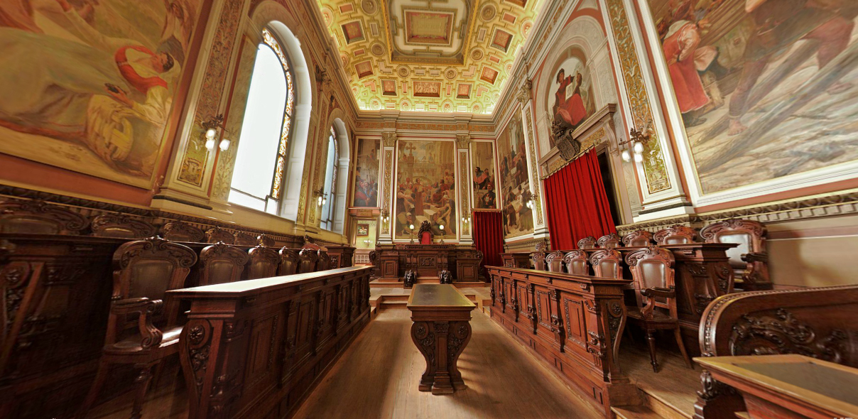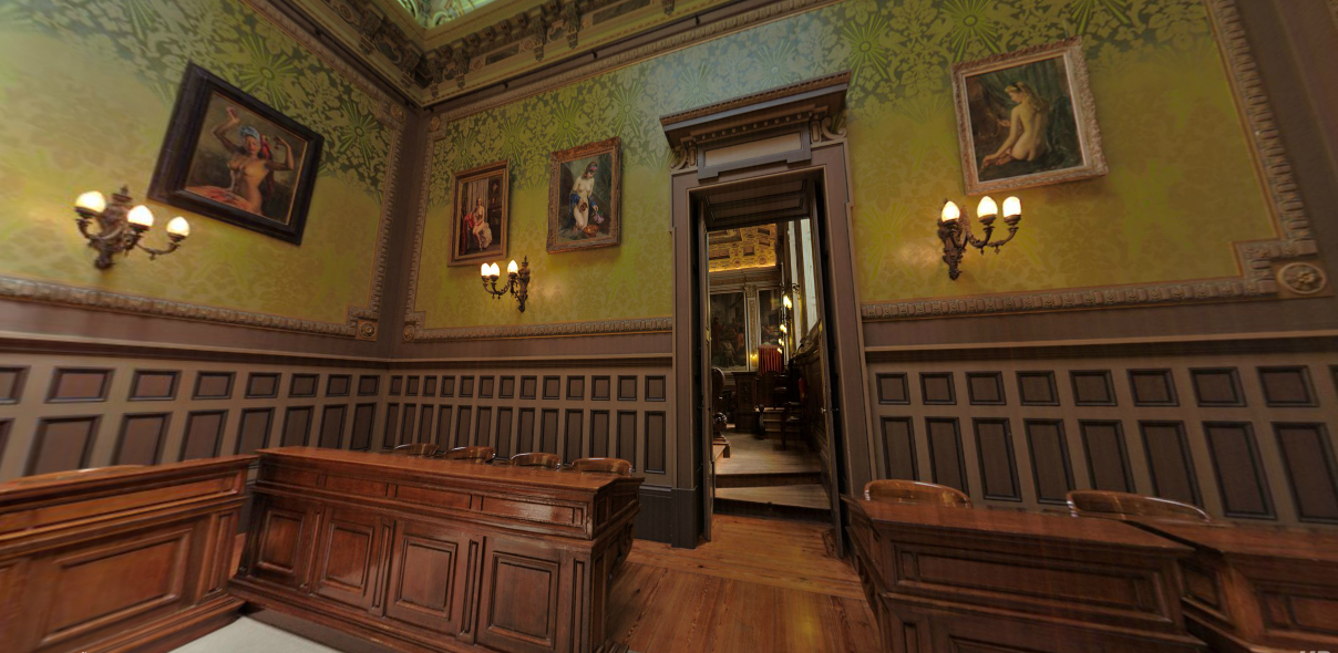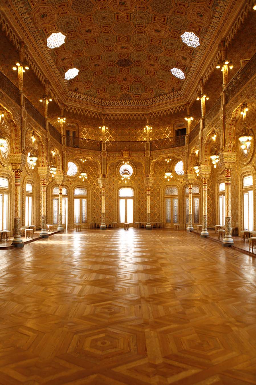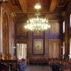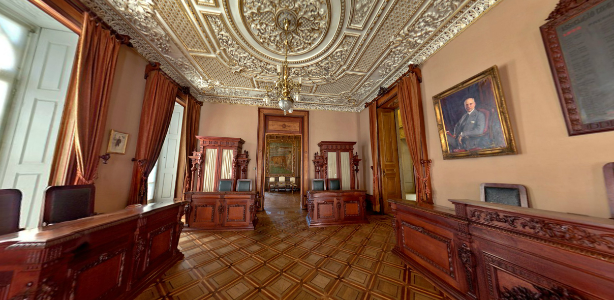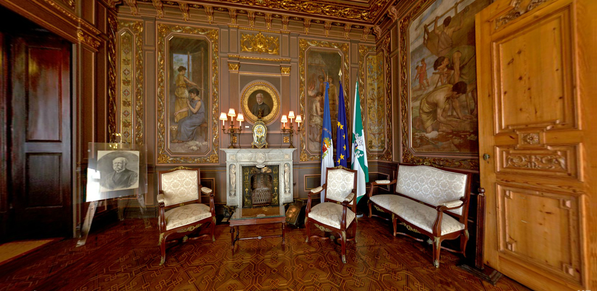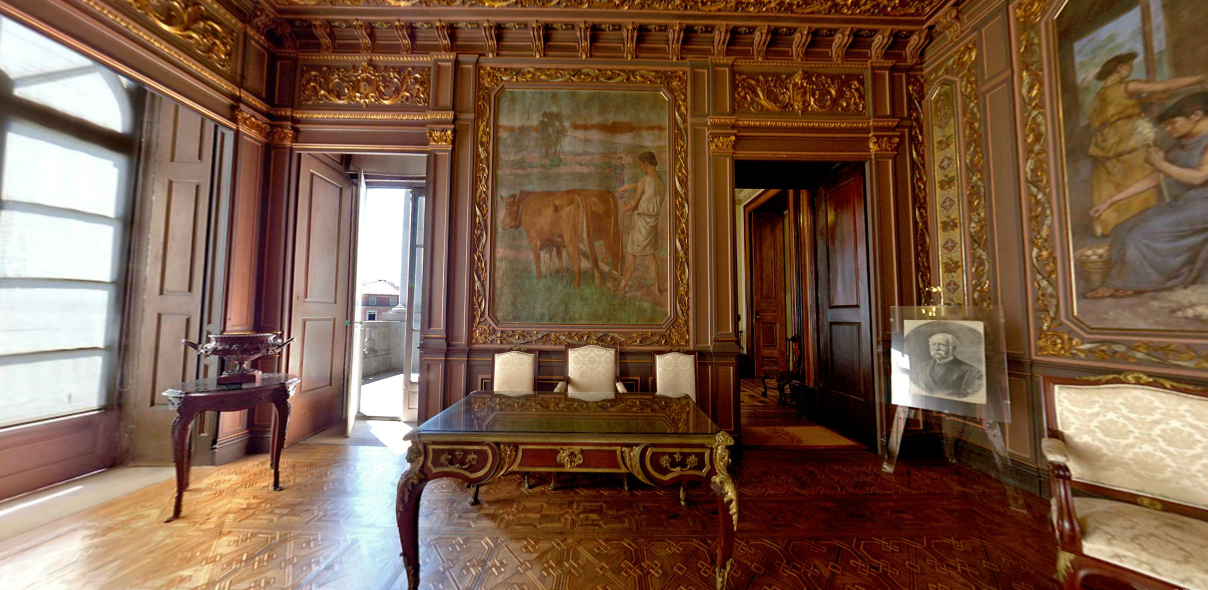 Durante a visita, passamos por escritórios e salas que vão engrandecendo de maneira gradativa: começamos com salas mais “simples” – ordenadas com madeiras vindas do Brasil e da África – até chegarmos a um salão de festas, decorado com ouro e pequenos detalhes criados especialmente para o salão.