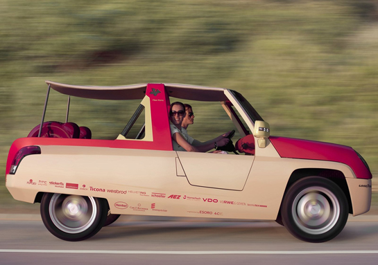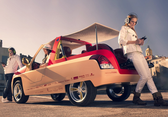 Com uma aparência semelhante a um carrinho de golfe, o modelo projetado pelo engenheiro Frank Rinderknecht, em parceria com a Esoro, possui alguns itens cheios de tecnologia. O tom da pintura varia de acordo com a posição da luz, e o que parece ser madeira na carroceria é revestido pelo StikerFix, que repara automaticamente pequenos riscos.
