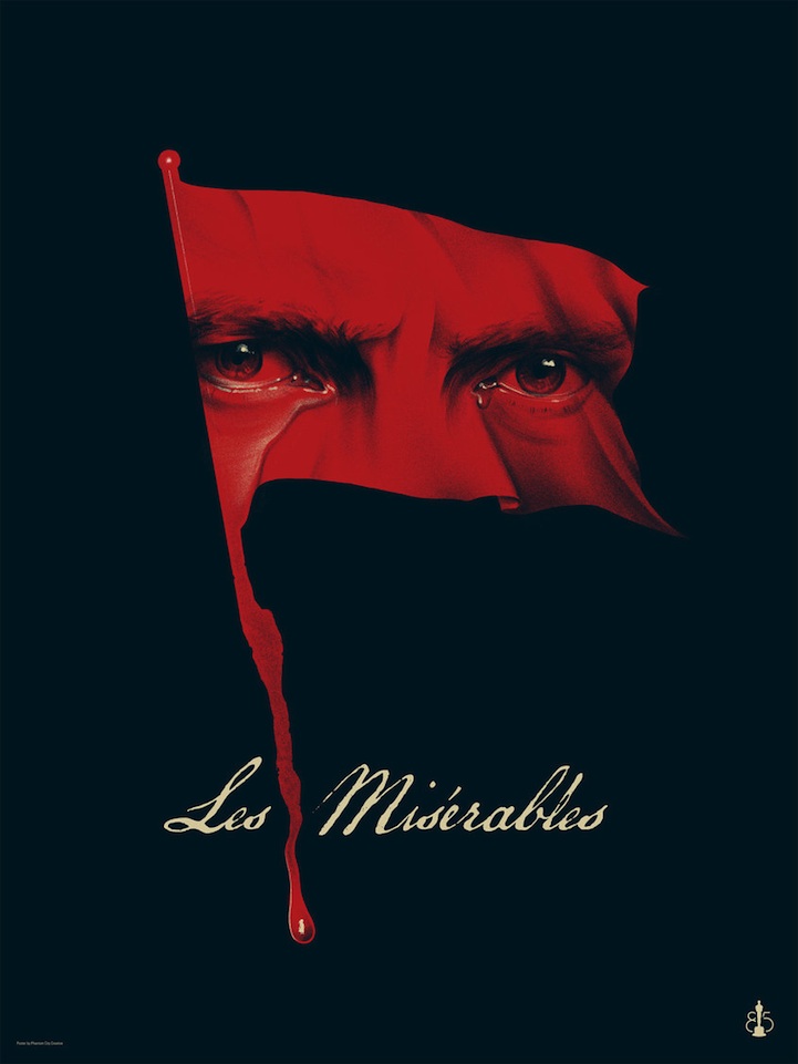 – Os Miseráveis recebeu uma belíssima arte do grupo Phantom City Creative, brincando com as cores da França (azul e vermelho), lágrimas e o derramamento de sangue nos ataques às barricadas;