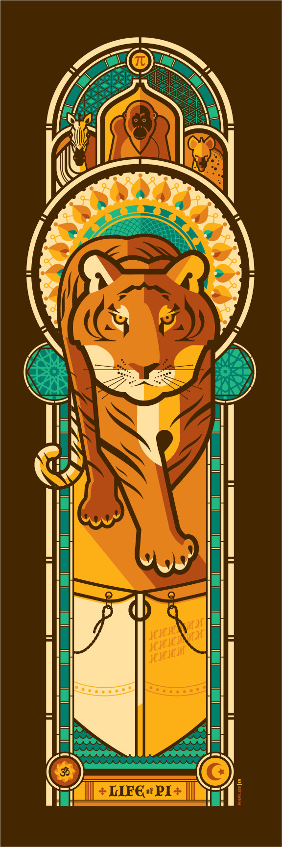 – As Aventuras de Pi ganhou uma obra de Tom Whalen que lembra um vitral, trazendo o impactante tigre no seu centro;